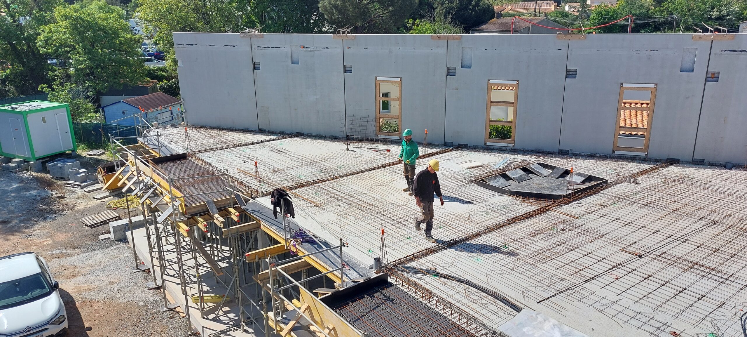 Notre entreprise est intervenue sur les travaux de gros œuvre pour la construction de cet ensemble d’une surface d’environ 1 200 m², comprenant 4 cellules commerciales. Les prestations ont notamment inclus la réalisation des fondations, des structures porteuses ainsi que la mise en œuvre de prémurs de grande hauteur.
